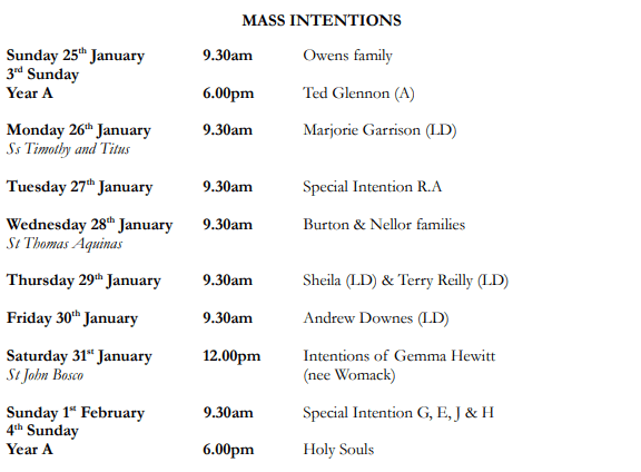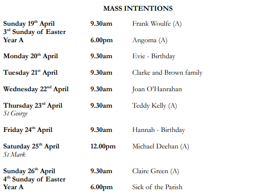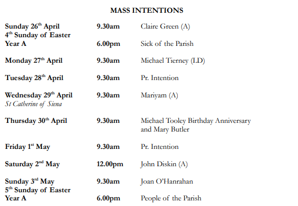 Mass Times & Intentions