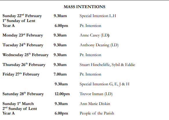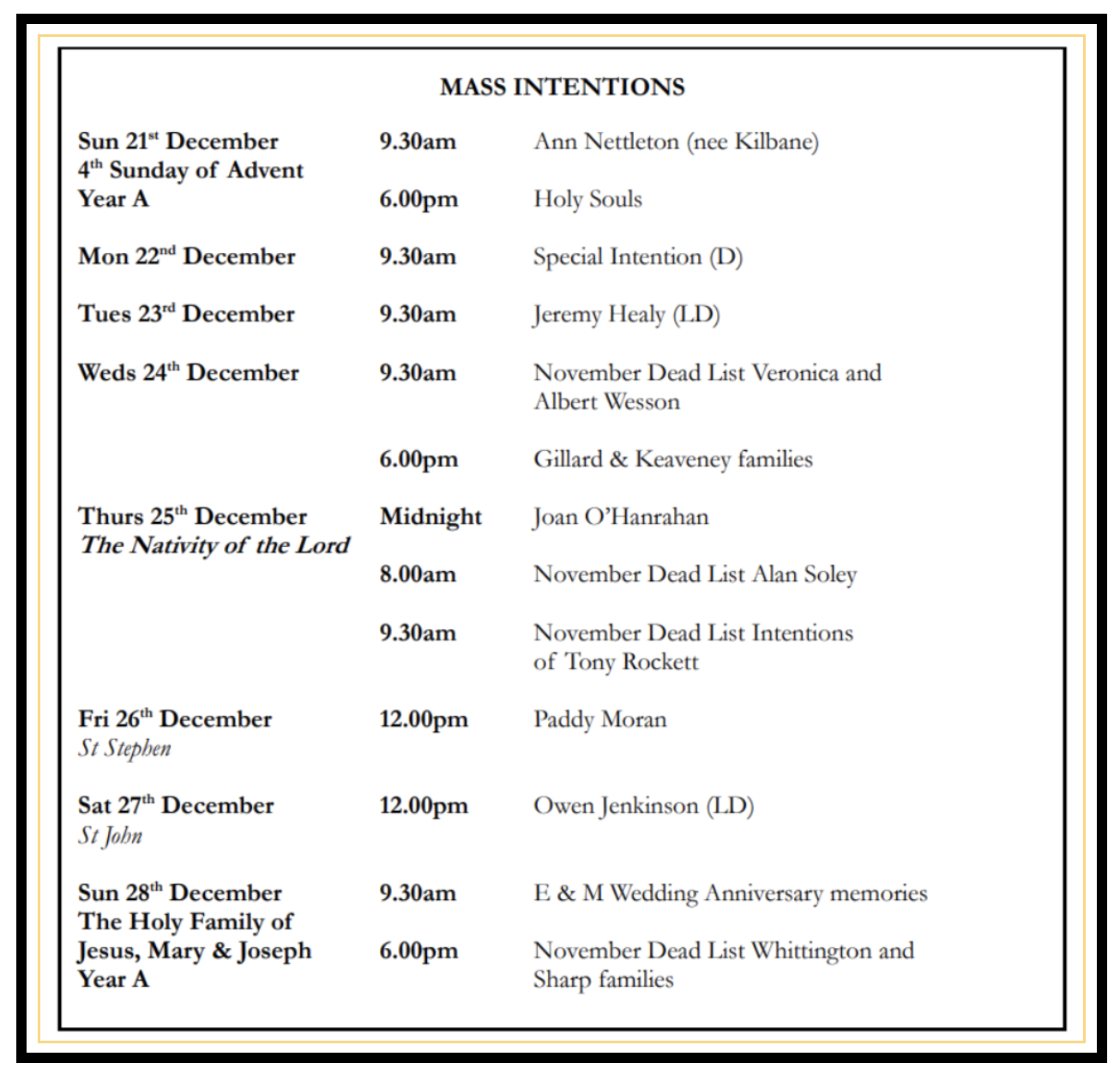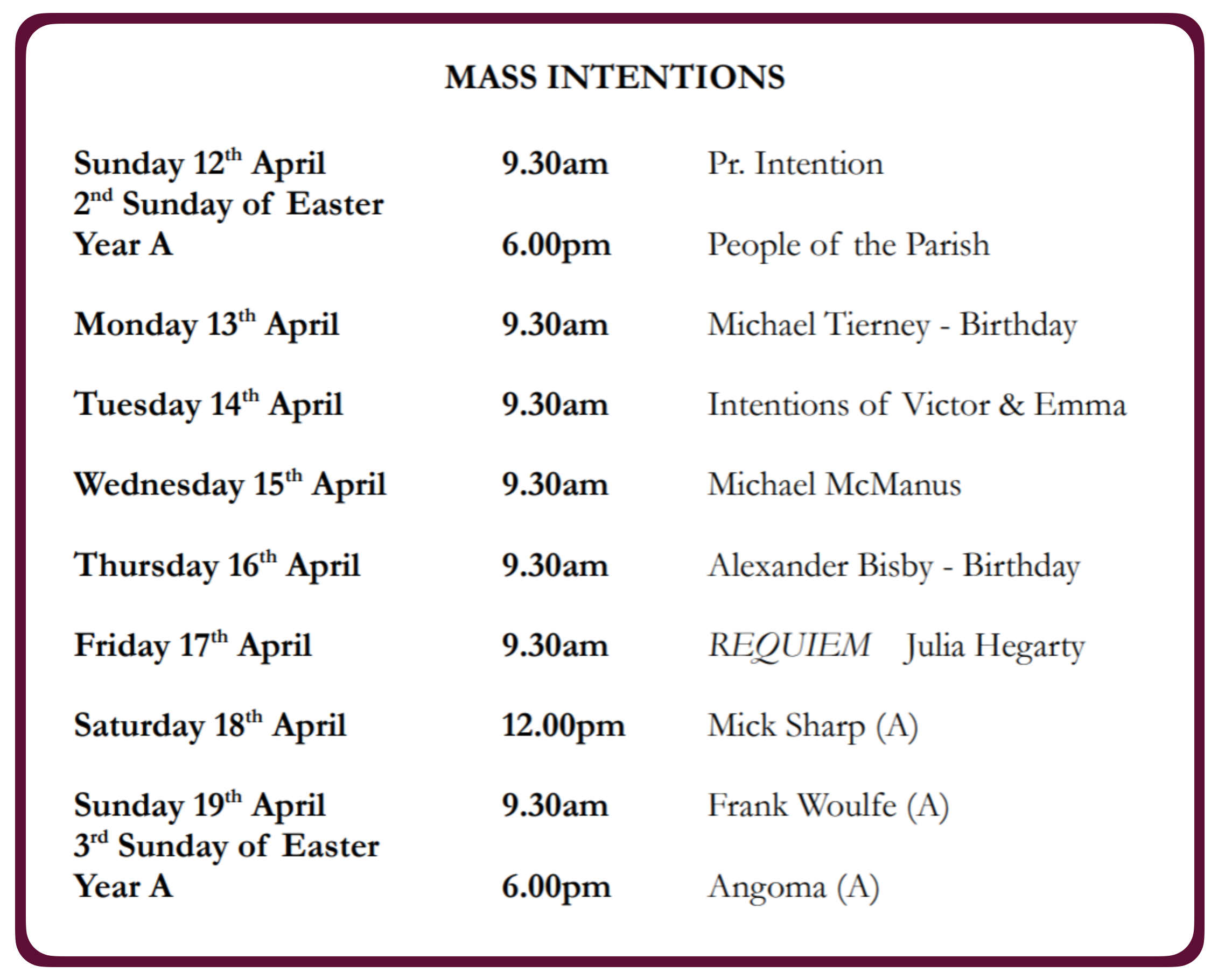 Mass is celebrated every SUNDAY at 09:30am and at 6pm.