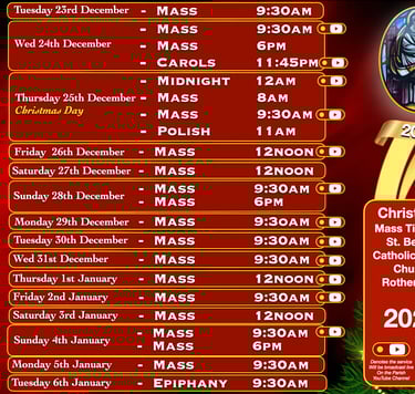 St. Bede's Parish Church livestream Mass daily from 09:25am Sunday to Friday. There is NO Livestream on a Saturday. We can also Livestream Requiem Mass for a Funeral, Wedding celebrations and baptisms provided no Copyright Music is played via CD over the sound system.