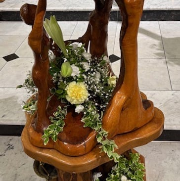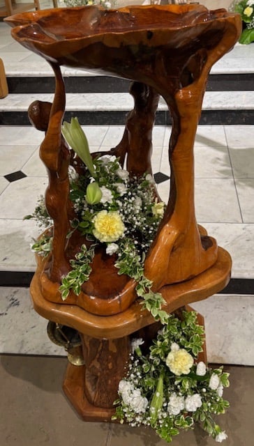 Moved near the baptismal font
