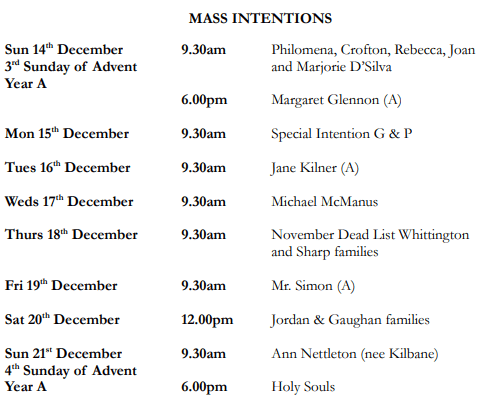 Mass is celebrated every SUNDAY at 09:30am and at 6pm.